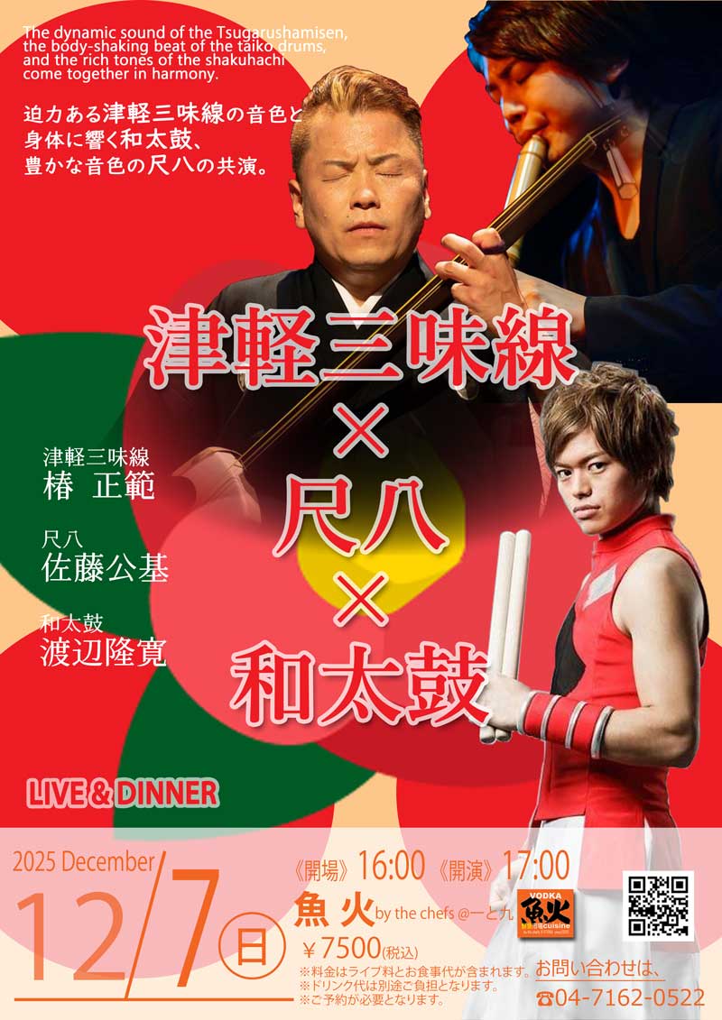 2025/12/7㊐津軽三味線×尺八×和太鼓ライブ